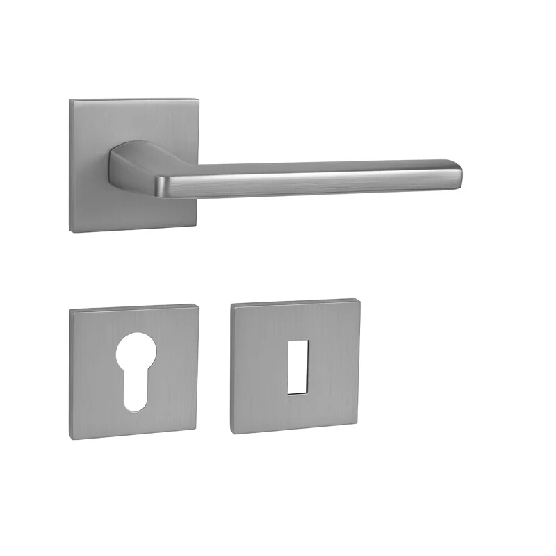 Rozetová klika na interiérové dveře s hranatou rozetou je vyrobena odléváním z kvalitních slitin zinku a hliníku a je povrchově upravena. Klika je povrchově upravována galvanizací a vyznačuje se vysokou odolností proti oděru. Kování je testováno na 100 000 cyklů.